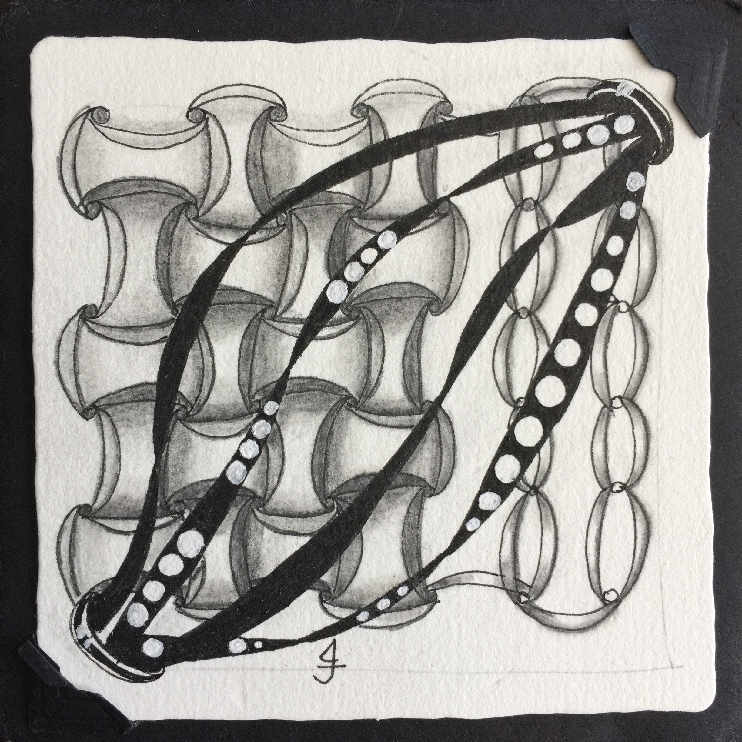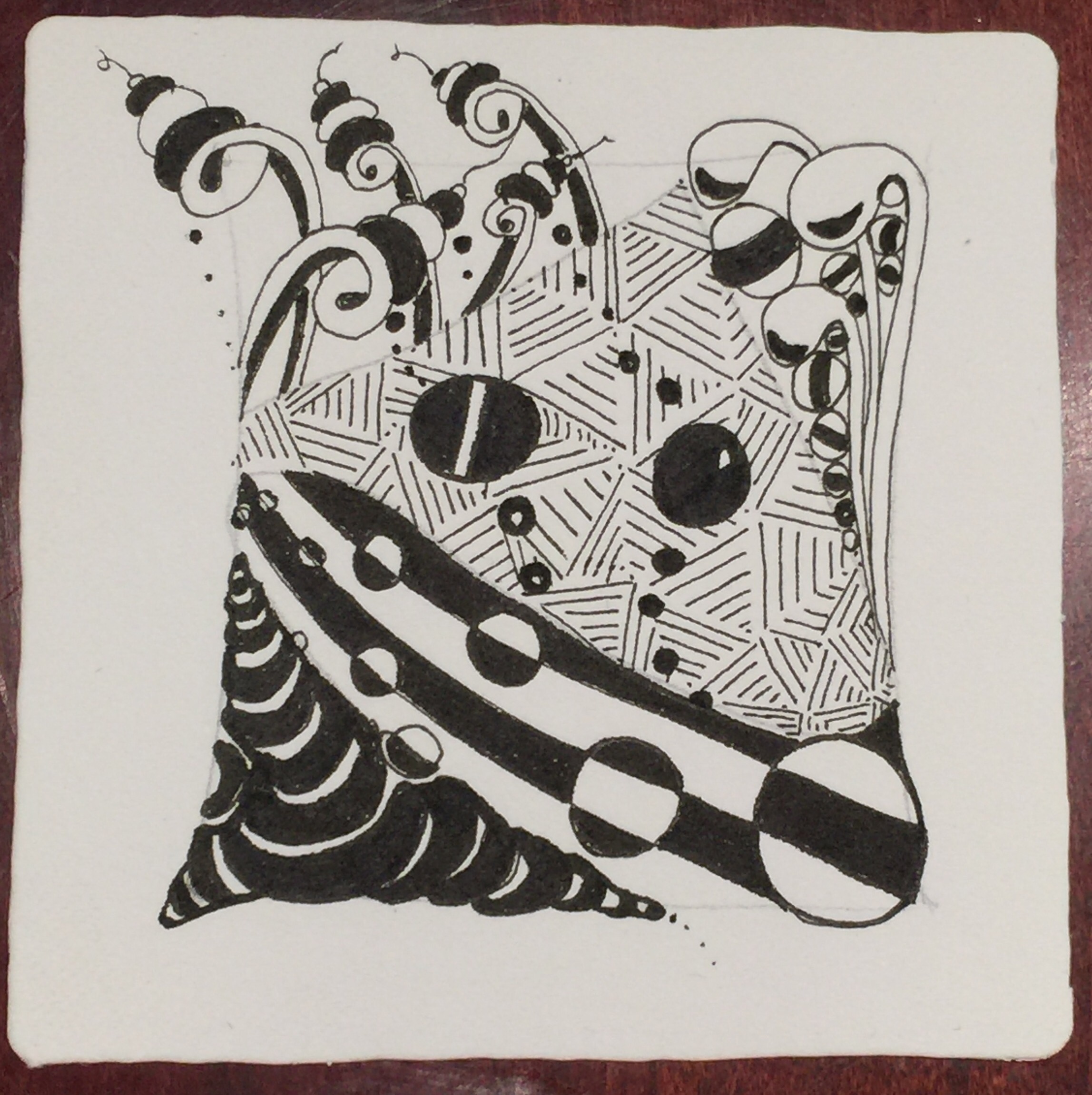 At first glance it looks very similar to Zentangle’s Fife, or Quandry. The visible differences are: